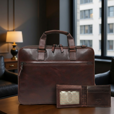 Invest in a leather briefcase and wallet set that works as hard as you do.